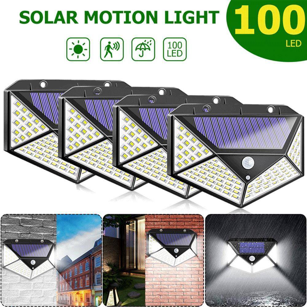 100 LED Solar Power PIR Motion Sensor Wall Light Garden Outdoor Waterproof Lamp