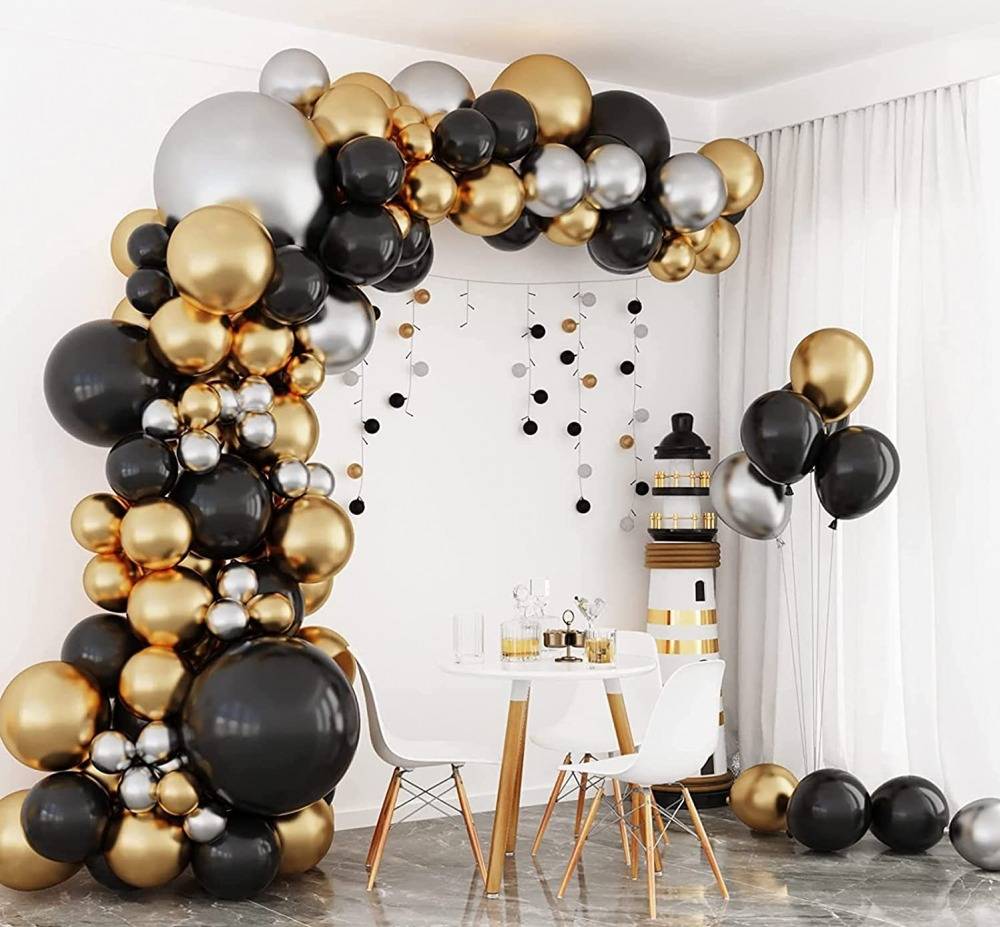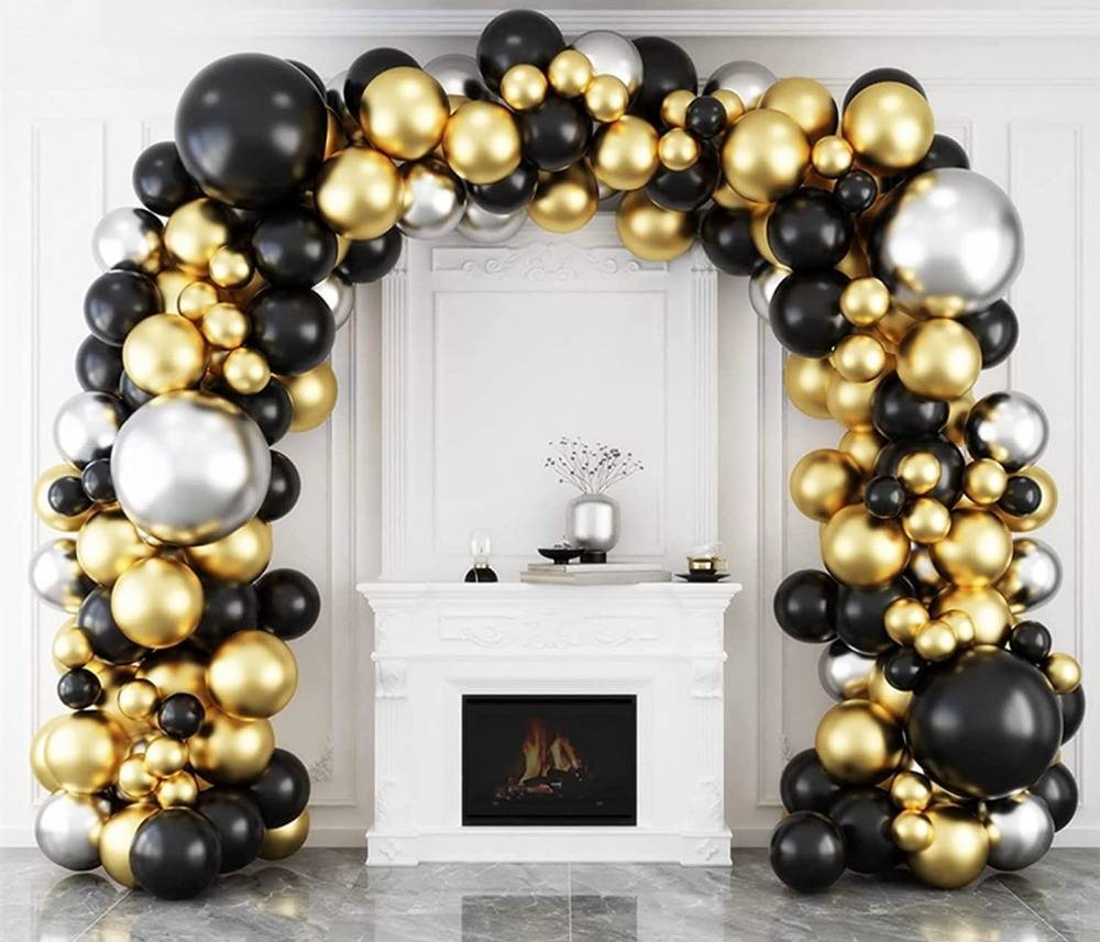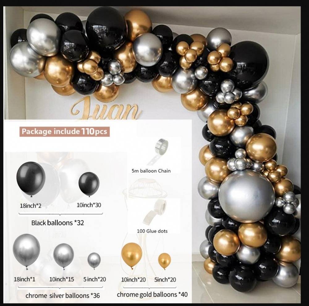 110PCS Party Balloon Gold Black Silver Balloon Garland Arch Kit