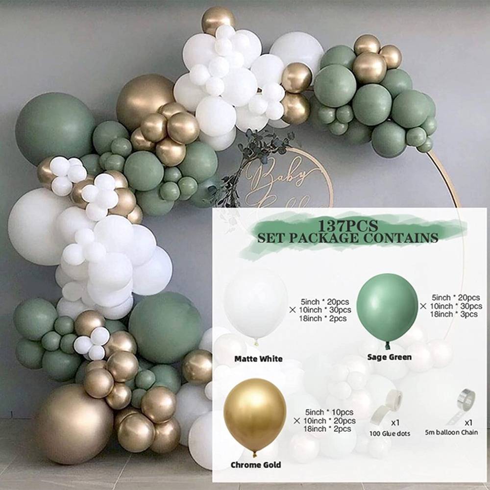 137PCS Party Balloon Birthday Wedding Balloon Sage Green Olive Garland Arch Kit