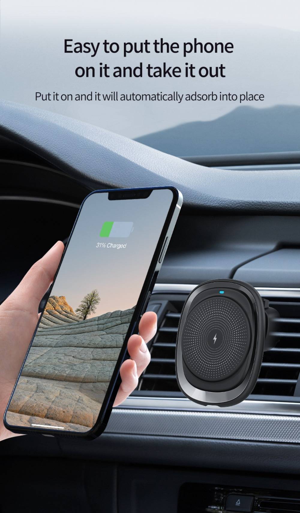 Our Magnetic car vent mounts wireless charger compatible with iPhone 14/14 Pro / 14 Pro Max / iPhone 13/13 Pro / 13 Pro Max / 13Mini/iPhone 12/12 Pro/Pro Max/Mini mag-safe case accessories magnet phone holder stand 15W fast charging car mount wireless charger provides safe and fast charging. Now you can charge your phone, glance at your GPS, receive hands-free calls and keep your eyes on the road.