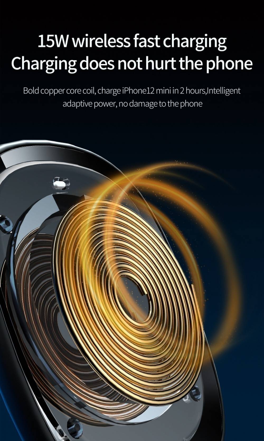 One-hand Operation: Built-in multiple rare earth magnets, which can be used for positioning and adsorption. Only Need to Put Your Phone Close to the Wireless charger, and It Will Automatically Senses the Magnetic Field and Locks the Inside Coil in Place, Then the Super Magnetic Force Will Make Them Perfectly Attracted Together and Automatically Complete Fast Wireless Charging.
