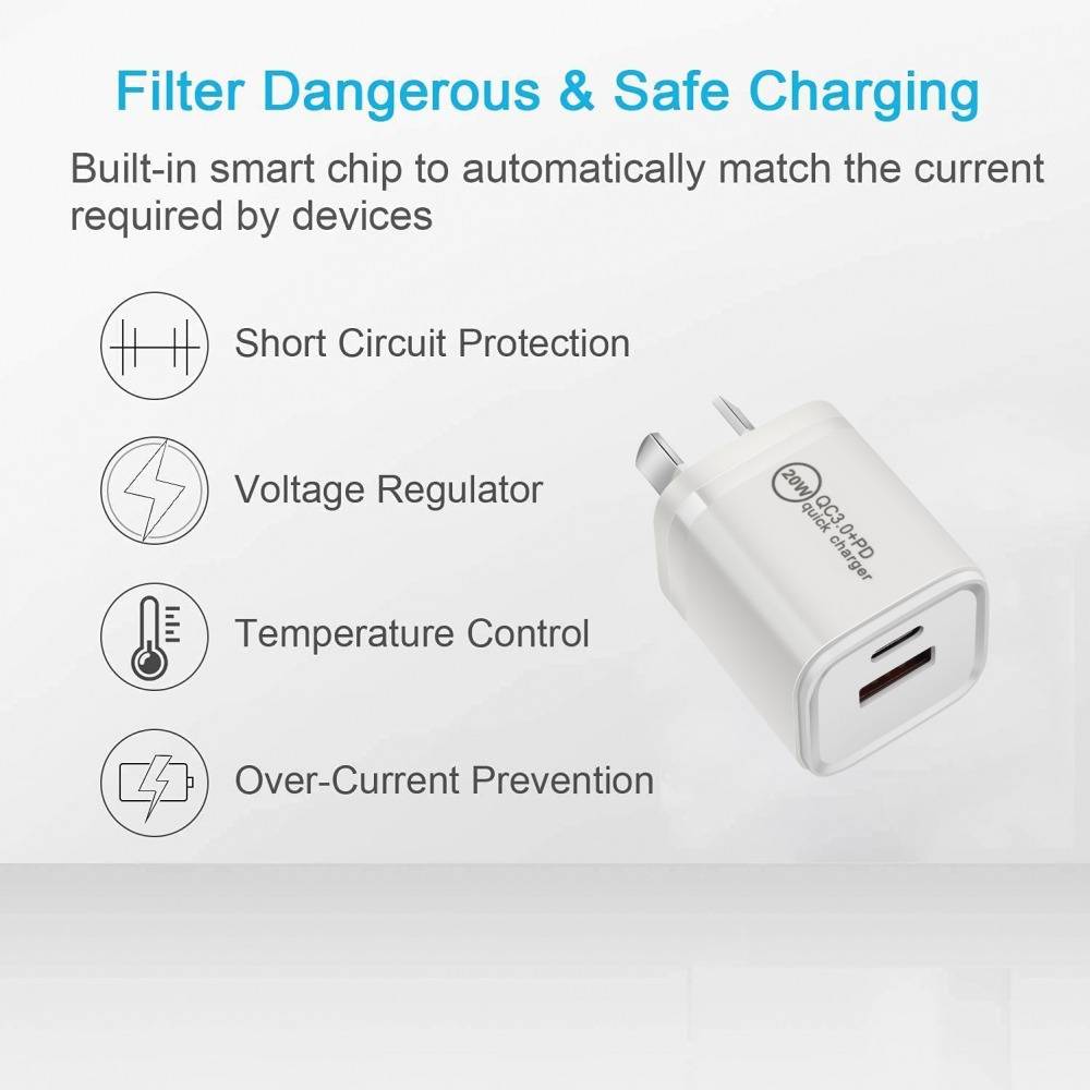Looking for a wall charger that is compatible with iPhone and Android as well? This high-quality charger has QC3.0 which support up to 20w for the fast charger. PD charger also provides rapid charging speed for iPhone which from 10% to 50% charging only needs 30mins.