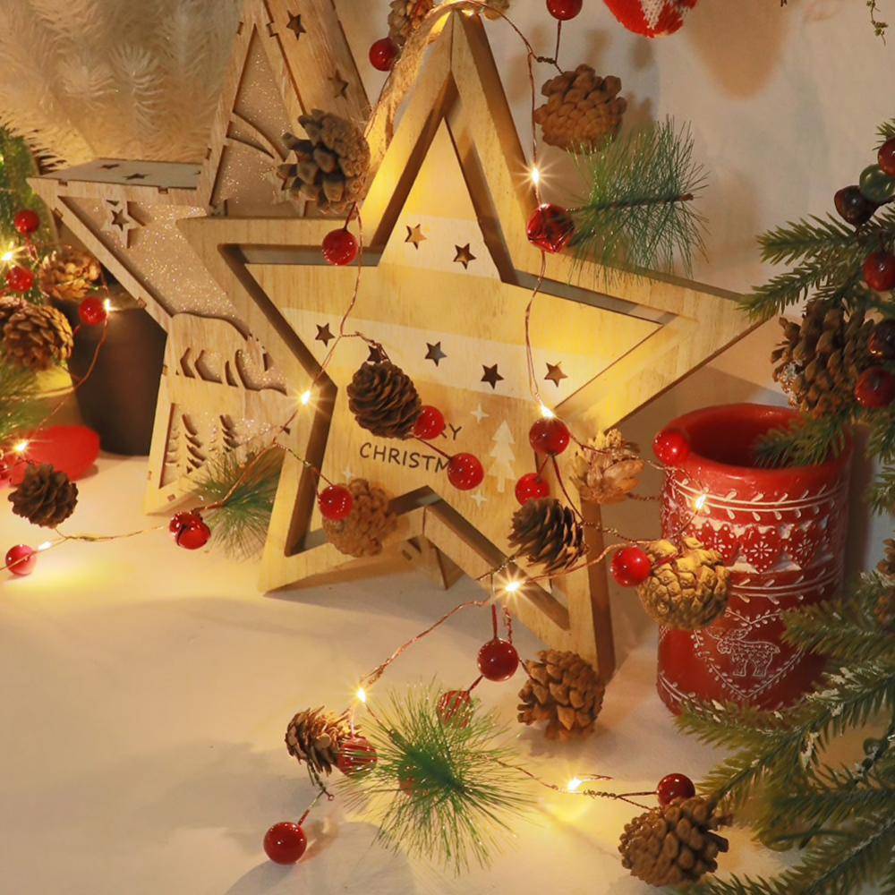 2M 20LED LED Light Red Berry Pinecone String Lights Garland Lights
