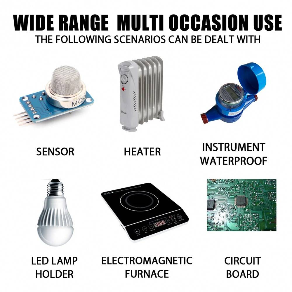 Application: Bonding of electronic components, electrical equipment, sealing semiconductor materials, electric heaters, electronic instruments, etc.