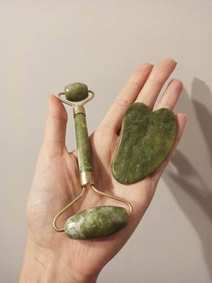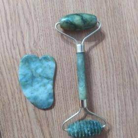 This stone skincare tool kit is made of jade, with reinforced stainless steel holders, convenient to hold and easy to use.