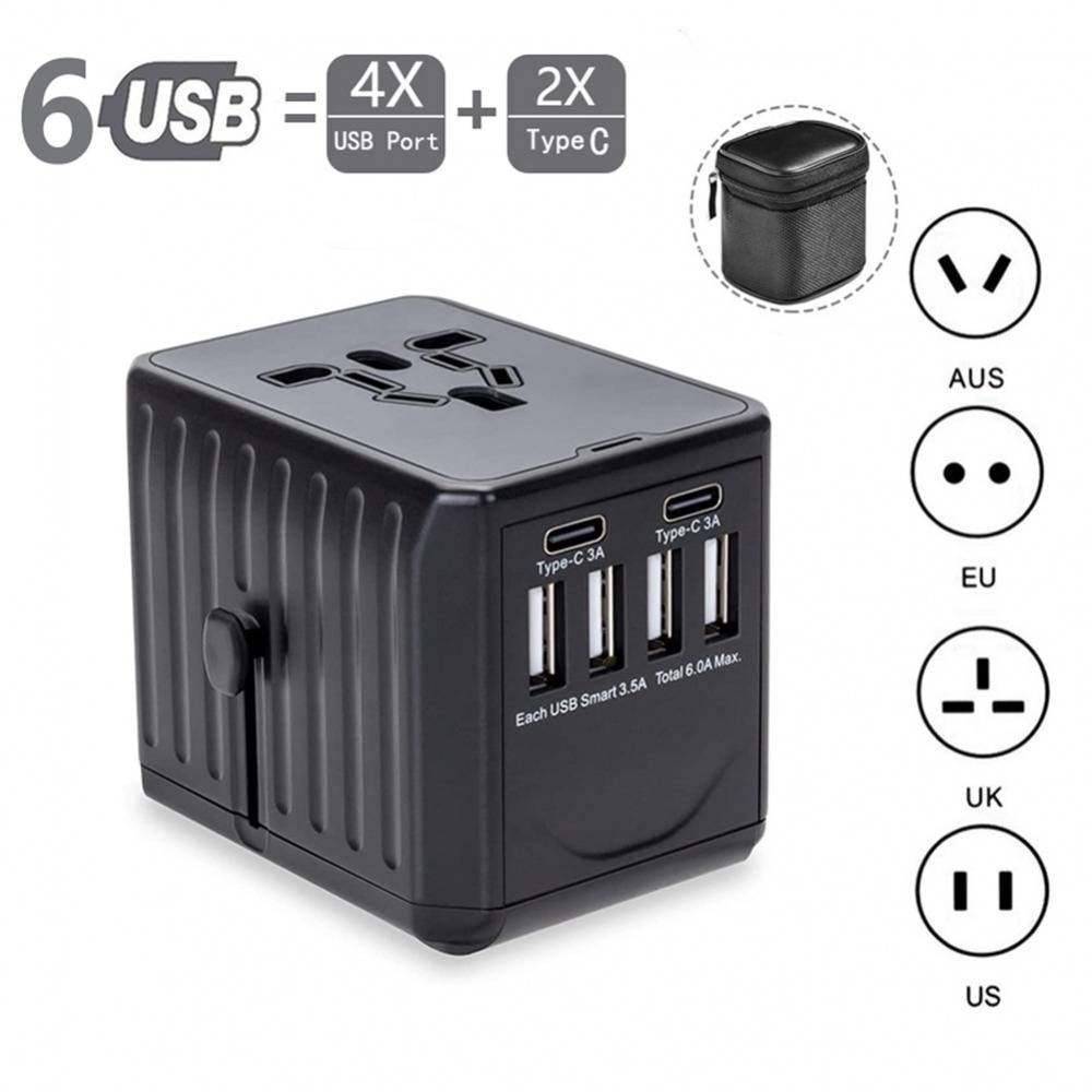 Universal Travel Adapter Convertor 4 USB, 2 USB-C PD