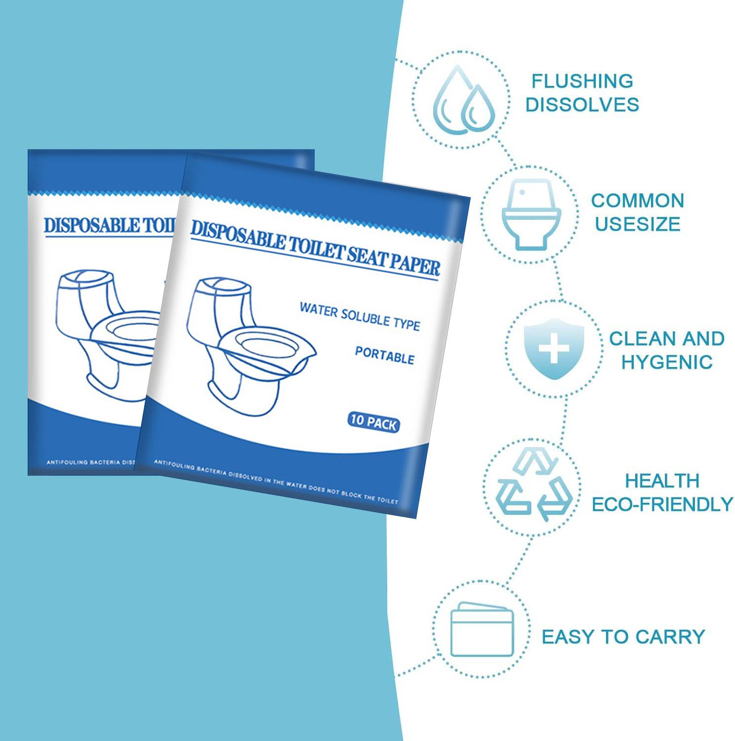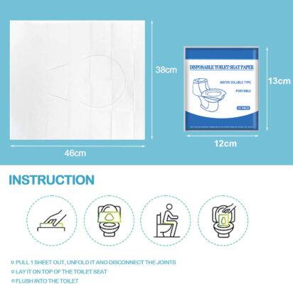 Our Flushable Toilet Seat Cover comes in handy pocket sizes, making it easy to carry wherever you go. Made from natural paper, these covers are anti-bacterial and durable, ensuring a hygienic barrier. Perfect for toddlers and everyone during toilet training, this product is your go-to solution for on-the-go cleanliness.