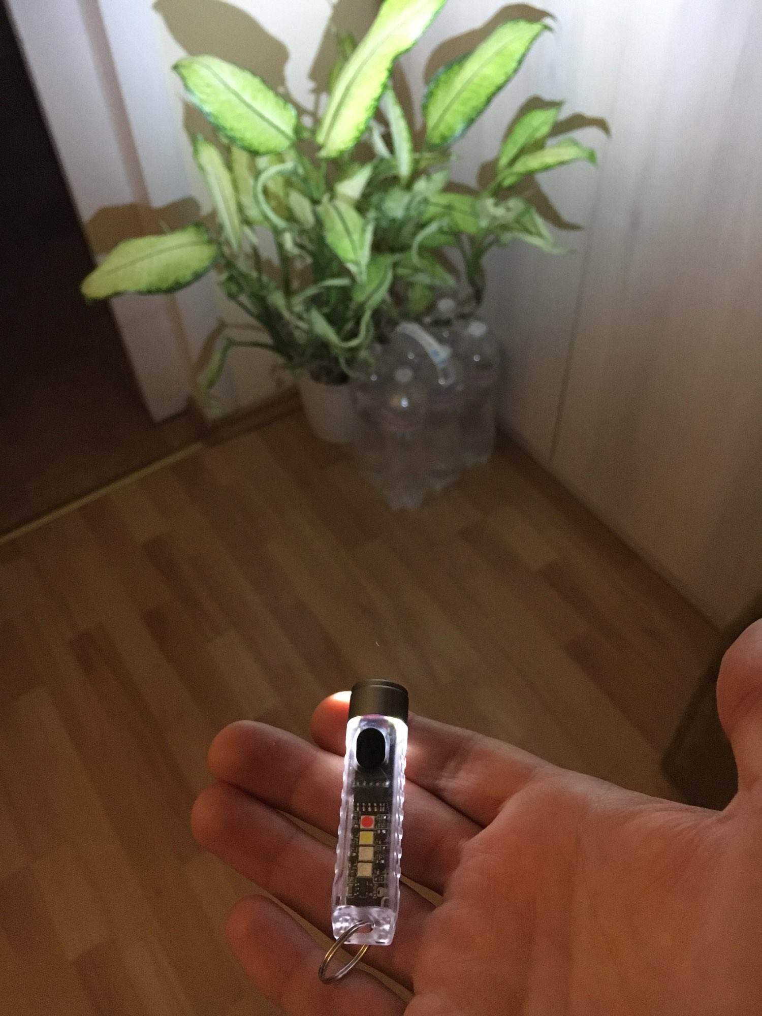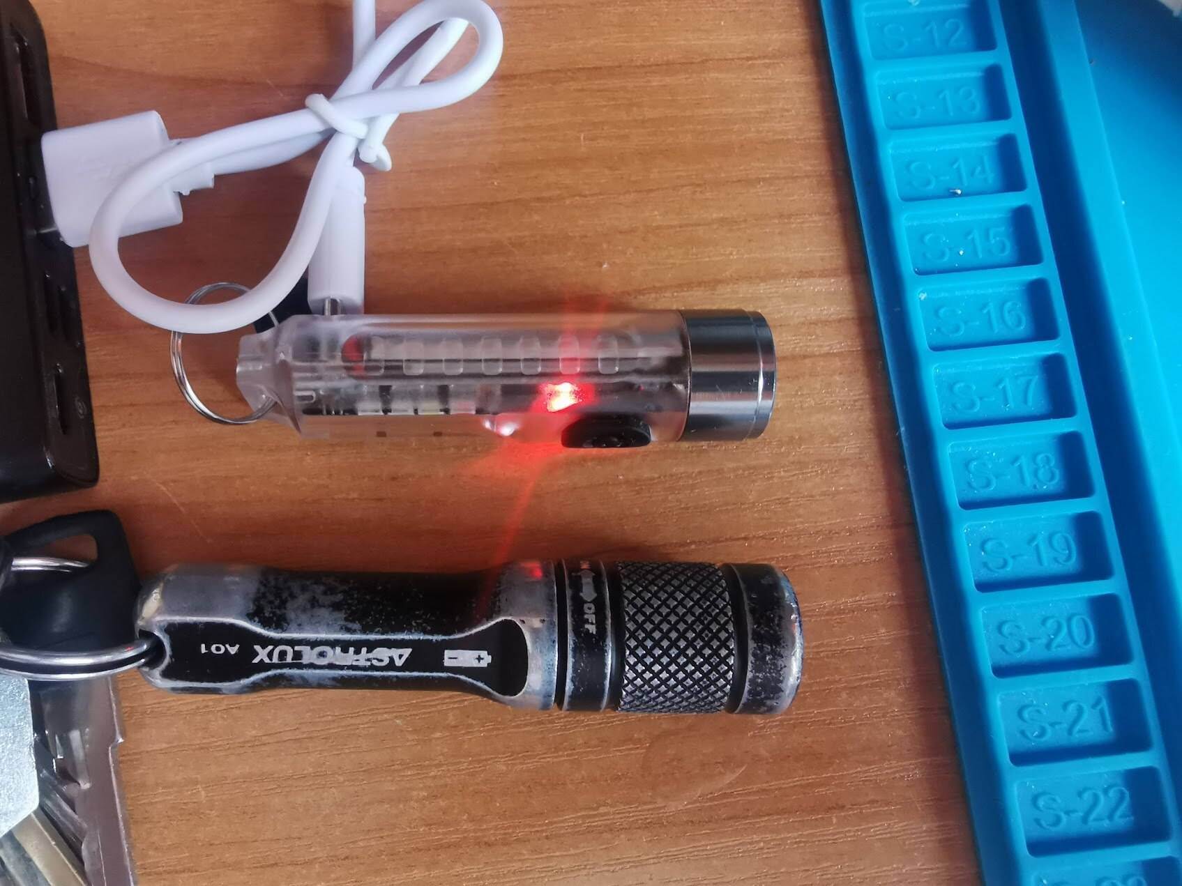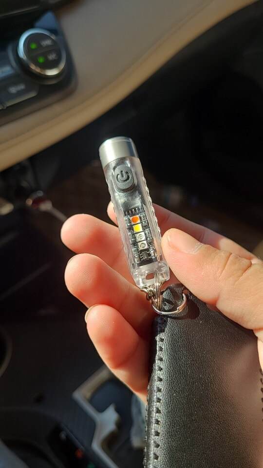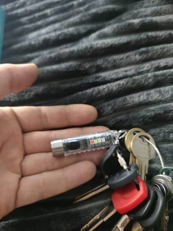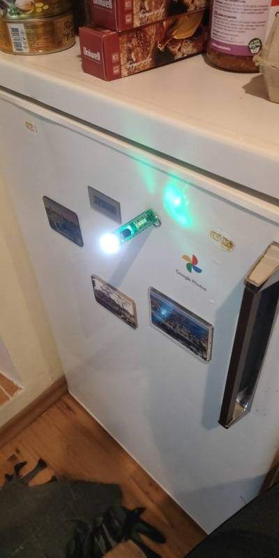And a cool flashlight, shines brightly. Of course not for lovers of warm light, but like a keychain is just super, and there is a side light and no UV to shine under your feet and a magnet.