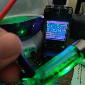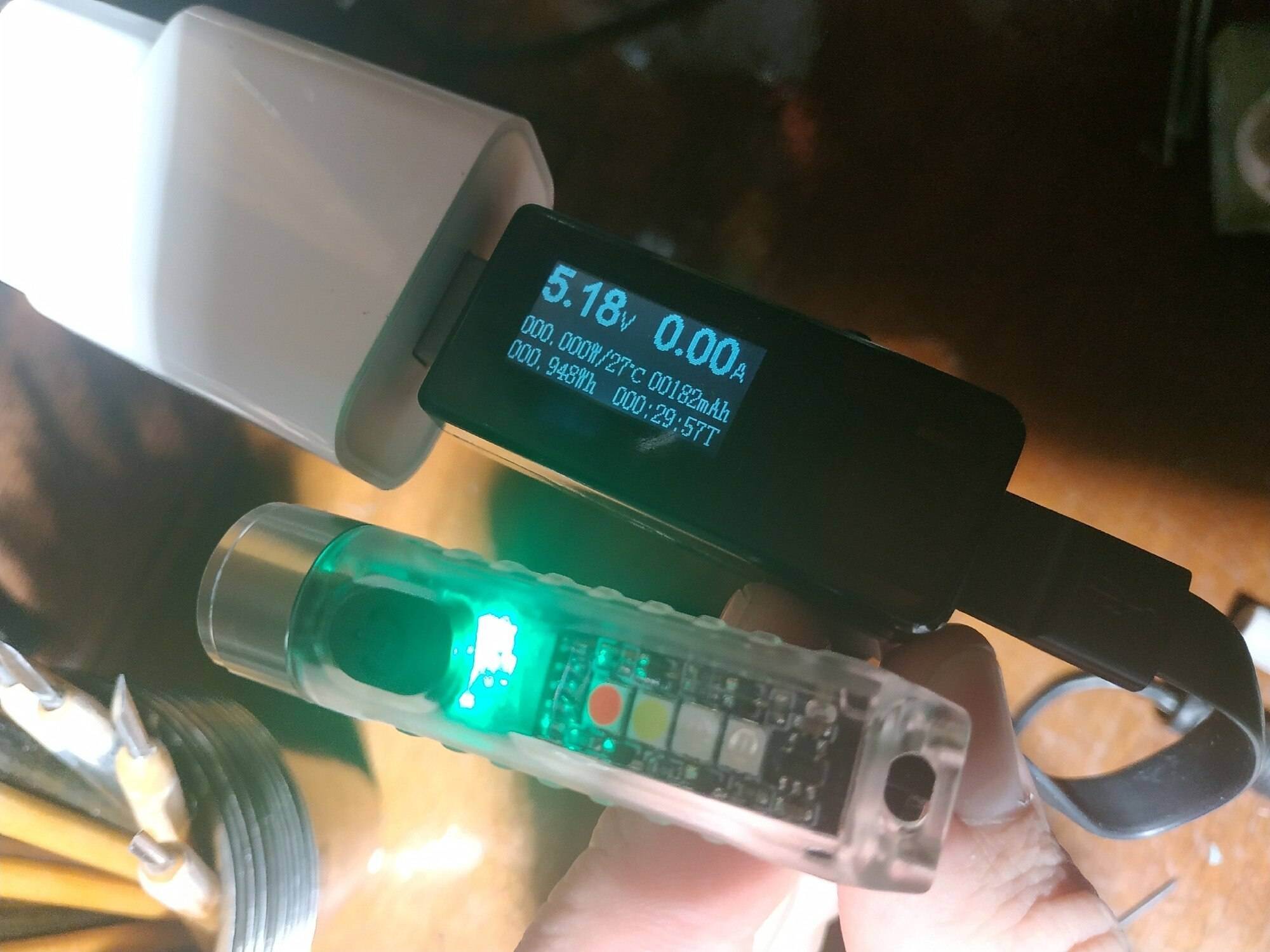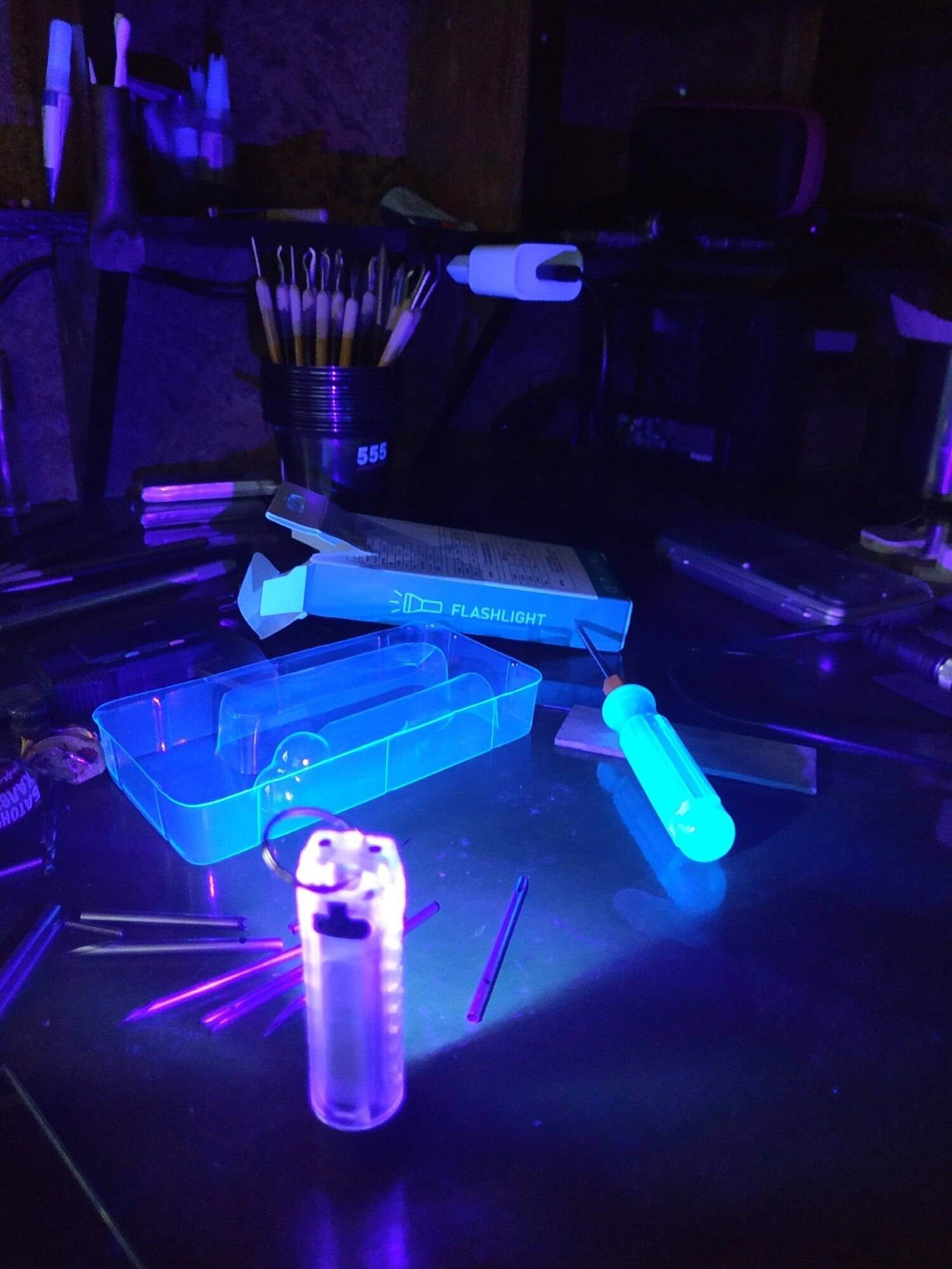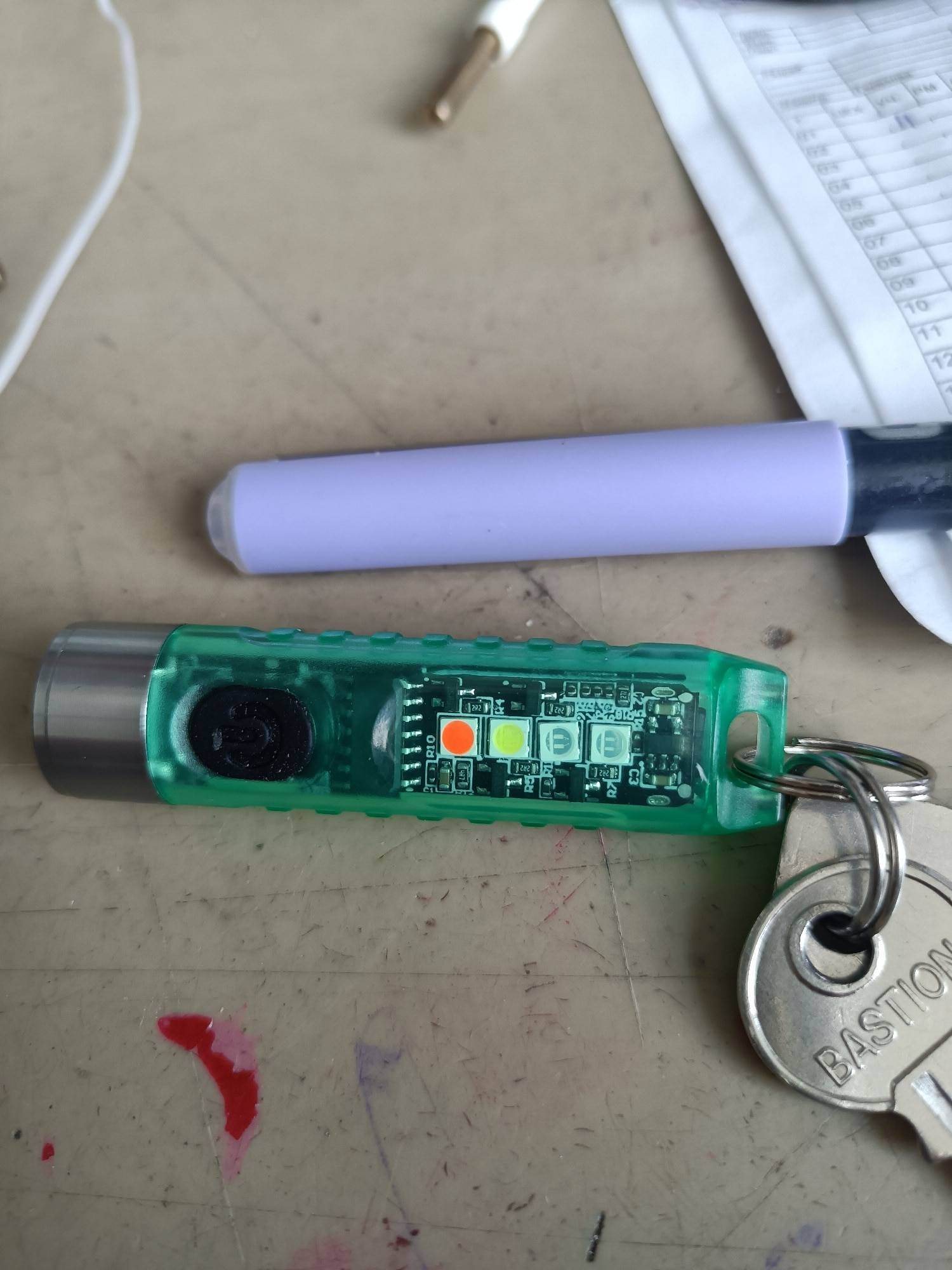 And a cool flashlight, shines brightly. Of course not for lovers of warm light, but like a keychain is just super, and there is a side light and no UV to shine under your feet and a magnet.