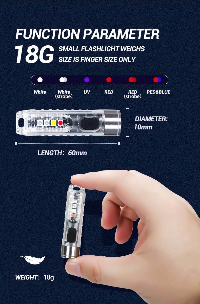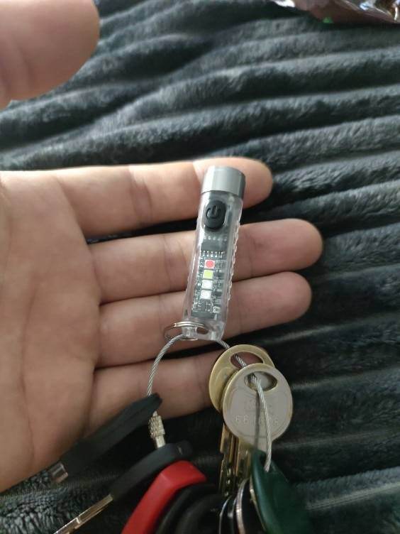 Best keychain, immediately ordered more gifts. Super. 6500 K brightness and modes, the rubber button is very hard. Hold-Max mode, release-Flatten. 2nb and then briefly press the brightness on the main diode. Long press-off.