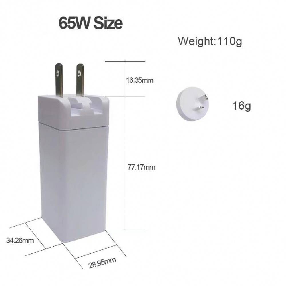 – Incredibly Small Volume: GaN tech concentrates 65W of powerful power in the compact size of a palm, which is 30% smaller than the old 65W charger, portable enough to carry anywhere. The streamlined Gallium Nitride power system ensures a smaller and lighter charger with higher charging efficiency.