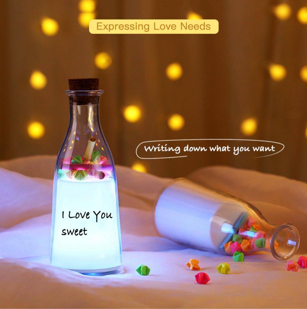 7 Colours Message Wishing Milk Drift Bottle LED Night Light Bedside Lamp