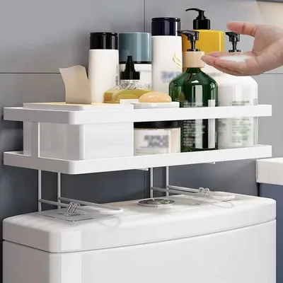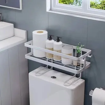 Transform your bathroom with our Bathroom Toilet Tank Shelf No-Punch Iron Toilet Rack! This innovative shelf is perfect for storing toilet paper, candles, and more while utilizing the often-overlooked space above your toilet. With convenient hooks for bath balls, everything you need is within reach.