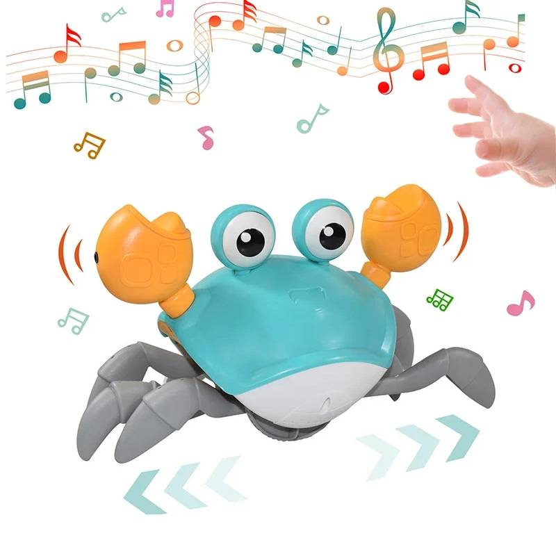 Answer: Yes, this electric crawling music toy has an infrared sensing function. When they encounter your body or other obstacles, they will move in the opposite direction.