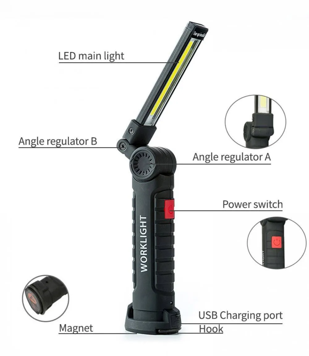 COB LED Torch USB Rechargeable Multi-Function Folding Work Light
