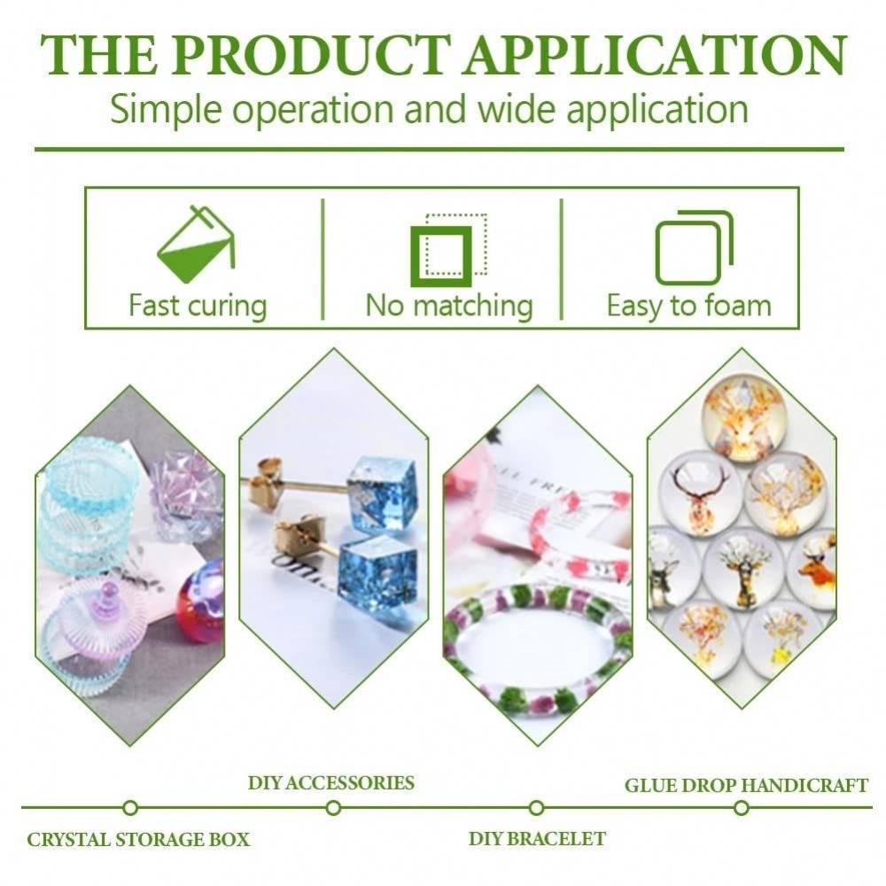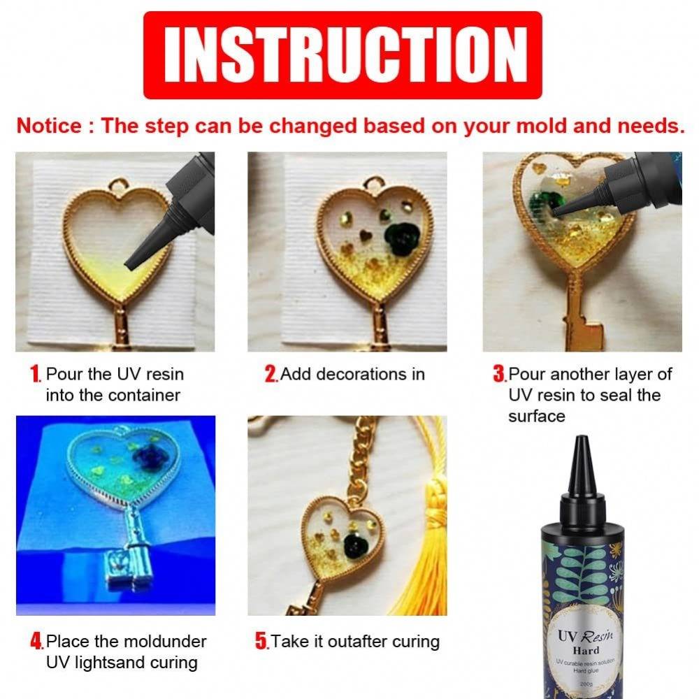WIDELY APPLY & COLOR YOUR LIFE: The clear UV resin can be used for jewellery making, crafts decorations, casting and coating, cast figurines and making resin paintings etc. It can also be mixed with mica powder, colourants, and glitter to get colourful finishes.