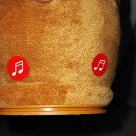 This is a Kings gift for my baby, he liked it very much and it works pretty well. has 2 buttons in one activates the songs and in the other the audio recording and repeats everything they speak.