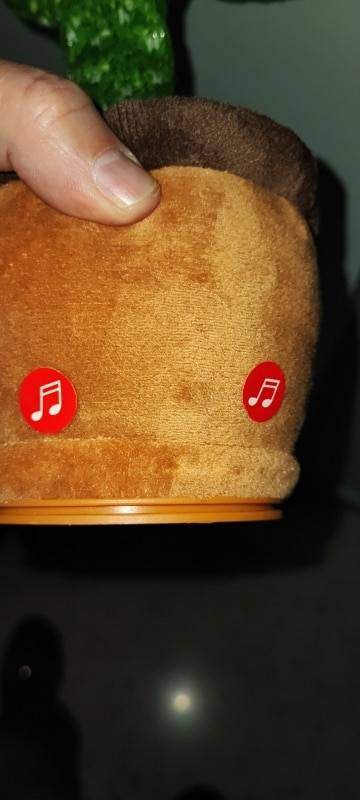 4. Left Label: Long press to record,15 seconds at most, and press to play sound — Right Label: press to play music, you can record after the song is paused, repeating the cactus toy and cactus talking toy