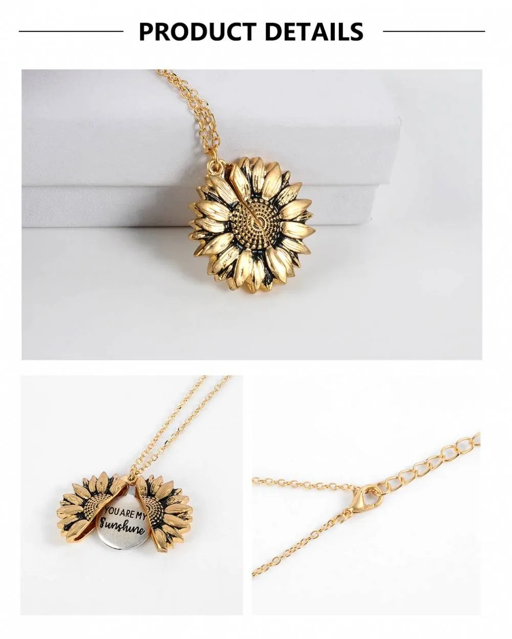 Gold Silver Open Locket You Are My Sunshine Sunflower Necklace For Women