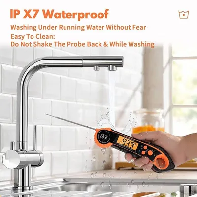 IPX7 Waterproof Digital Meat Thermometer with Durability: With IP67 certification, the grill thermometer is super easy to clean. Built for durability, the Qisebin digital thermometer can be washed under running water. It also withstands drops and other kitchen accidents! (NOTE: Please wipe it with a soapy cloth or rinse it to clean, and DO NOT soak it or put it in a dishwasher.) Coated with premium ABS material, the thermometer lasts long and works with great durability.