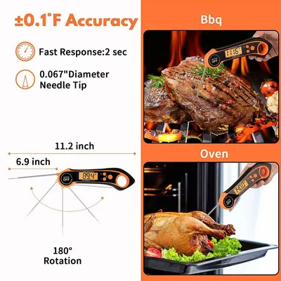 Ultra-Fast Accurate Reading for Meat Thermometer: Our instant-read meat thermometer takes a temperature in as little as 2-3 seconds. you’ll get the accurate temp (±1°F), Say goodbye to overdone or undercooked food and say hello to perfectly cooked steak, fish, or turkey every time!