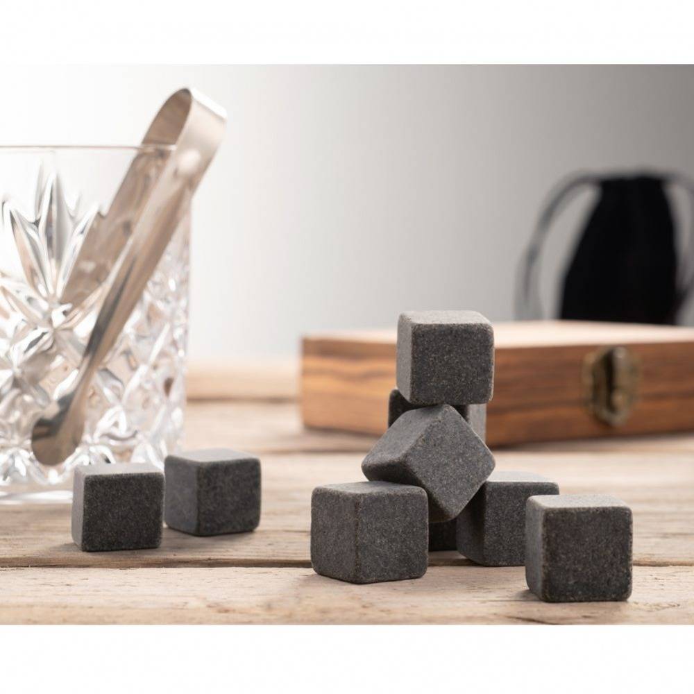 This ice stone set has 9pcs stones. They are ideal for drinking whiskey or beer or other drinks. Unlike ice cubes, they gently cool your drink without diluting them