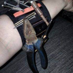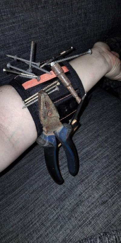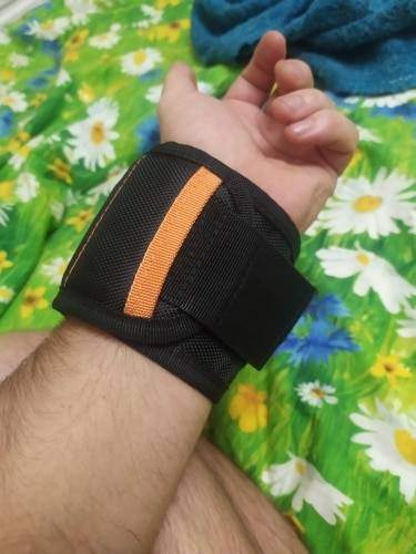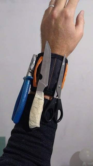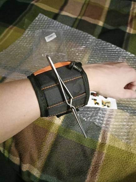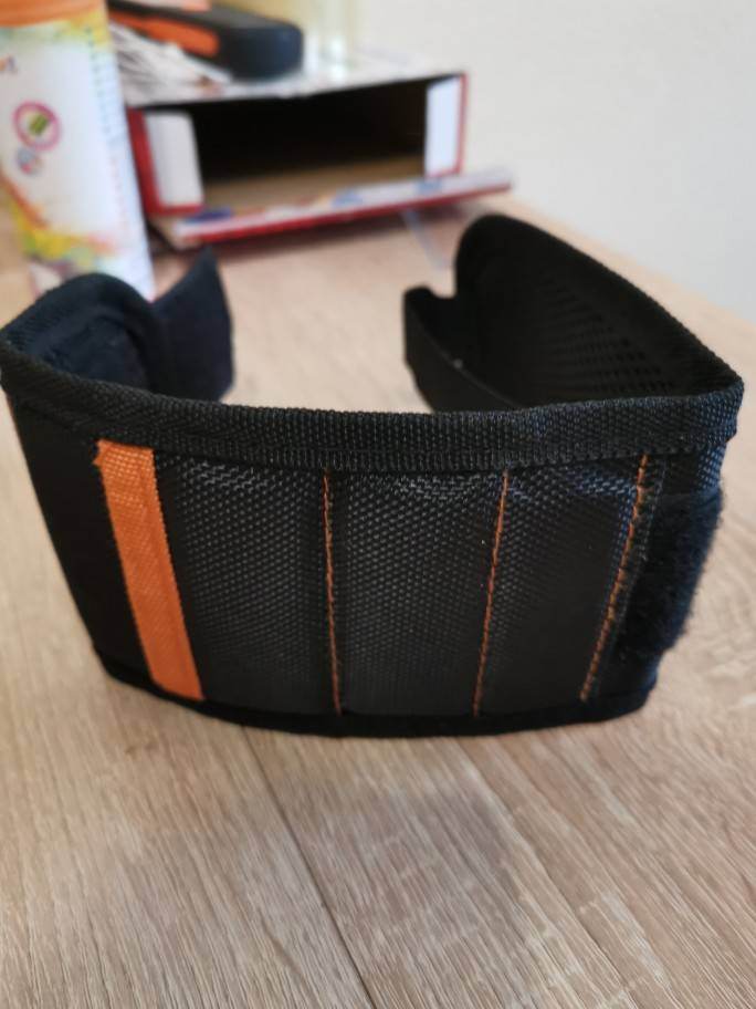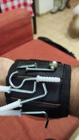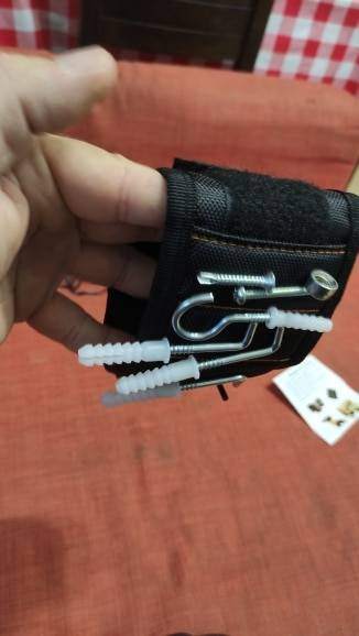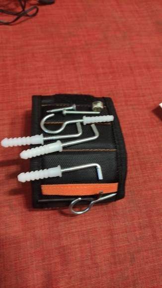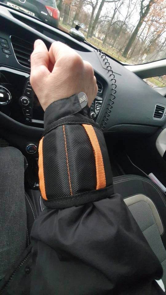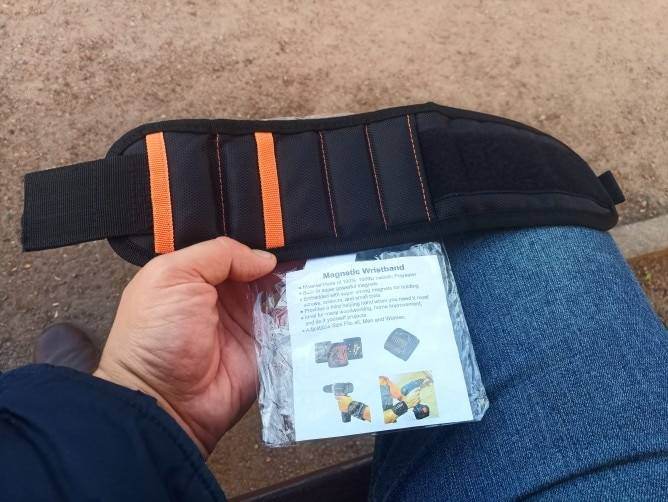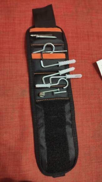The magnetic bracelet seems to hold self-tapping screws, nails, bits, swirls. And there are pockets for dowels or a pencil. The only thing that it is slightly uncomfortable to wear a bracelet with one hand-slips, well, then press your hand to the leg. (I’ll work and see how the bracelet bag is in the case.)