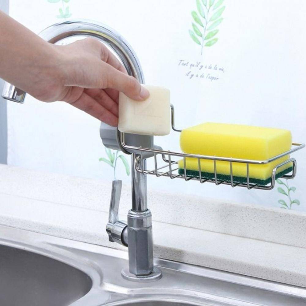 CLAMP DESIGN, EASY TO INSTALL – Clip on the tap, easy to use. The mat accessories can adjust the tightness. This kitchen sponge holder ONLY fit.
