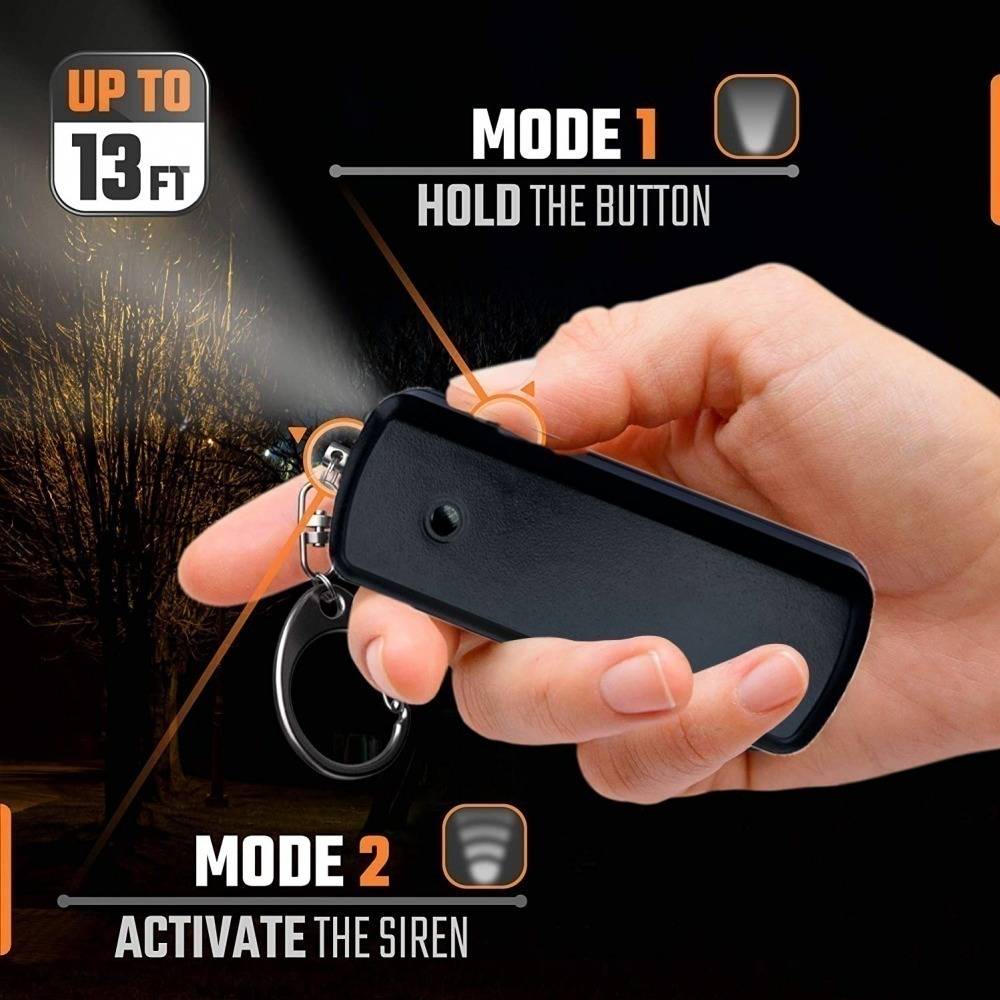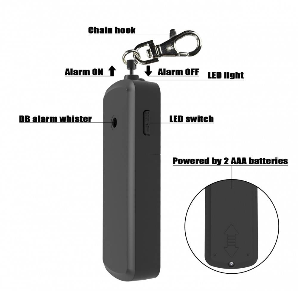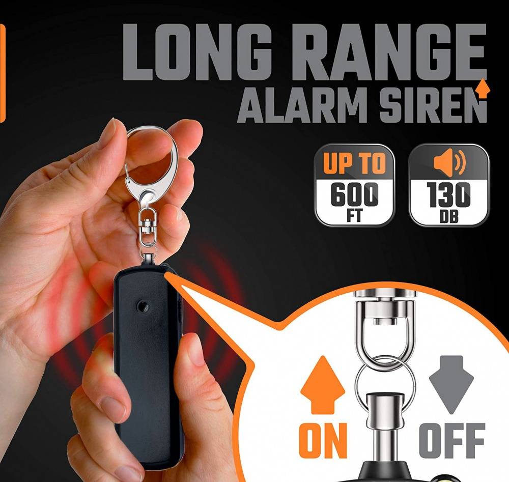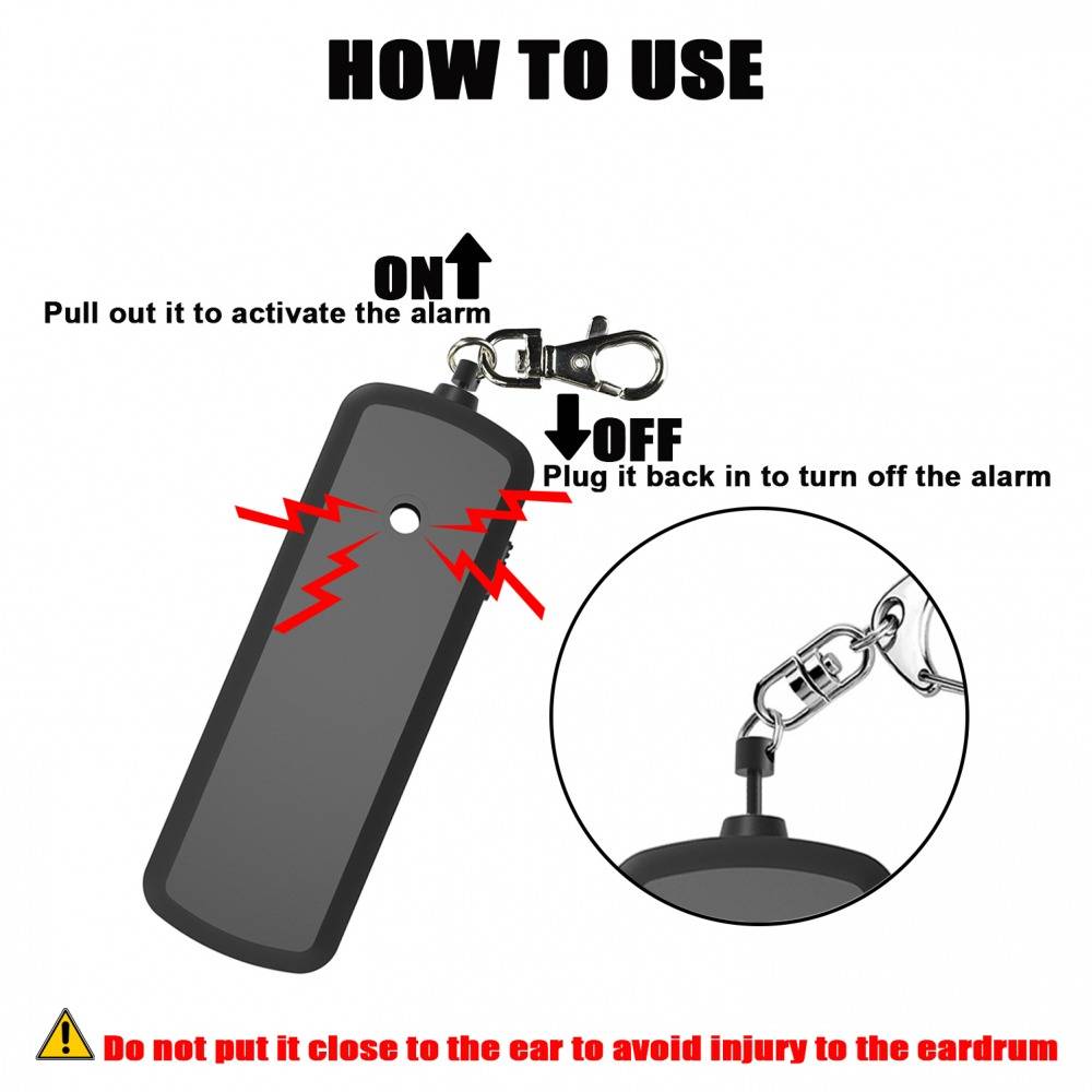 130dB Safe Sound Personal Alarm: The emergency alarm can make a loud sound to draw attention to protect you from having an emergency even at distances as far as 185 meters. In addition, the sounds could last 30 minutes continuous ear-piercing alarm.
