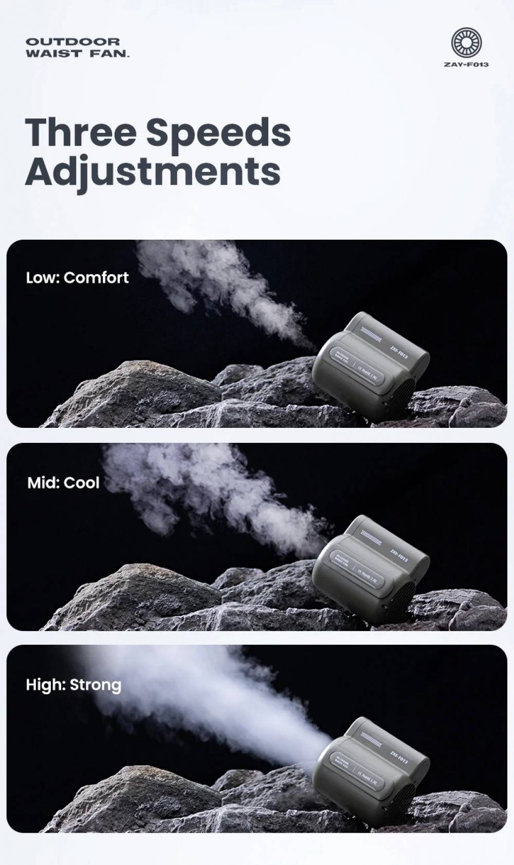 Stay cool and comfortable wherever you are with this portable fan. With 3 adjustable speeds, you can enjoy a refreshing breeze anytime, anywhere. The wearable clip and belt design make it perfect for outdoor jobs, travelling, and fishing.