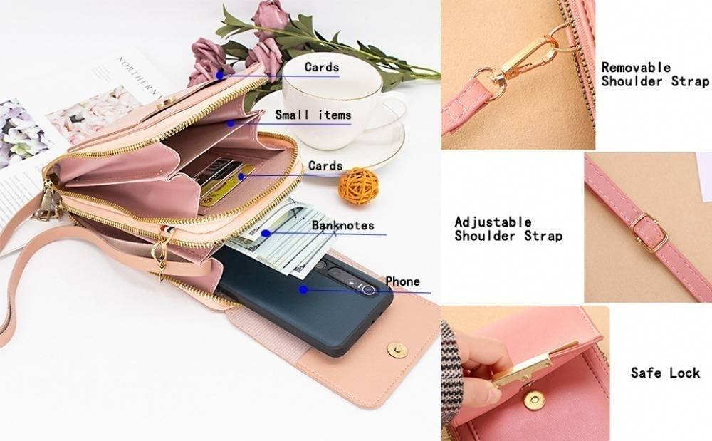 This Touchscreen Phone Bag is a thoughtful gift for a woman who loves to stay organized and look flawless. It accommodates your cellphone, passport, cosmetics, and credit cards, ensuring you have all your essentials at hand. Treat yourself or a loved one to this versatile accessory today!