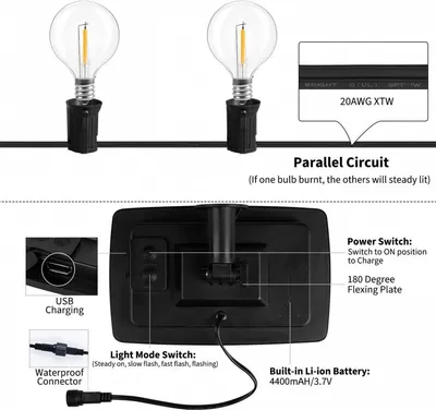Solar and USB charging options: These solar string lights can work up to 12 hours after full charging by sunlight. A 180-degree adjustable panel allows you to get the optimum sun exposure. The USB charge can be complementary when there is no sufficient sunlight during the day.