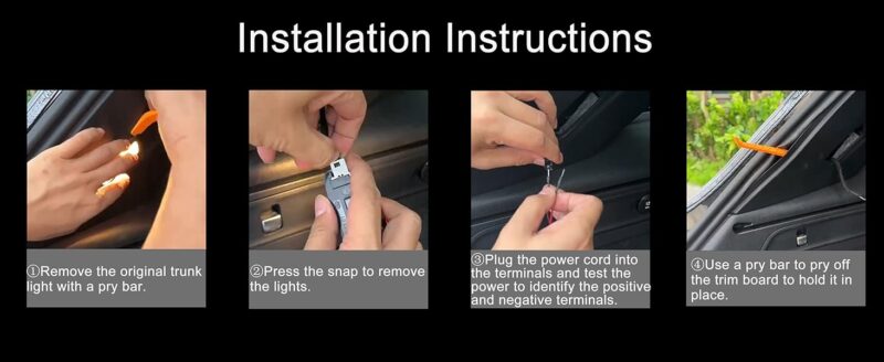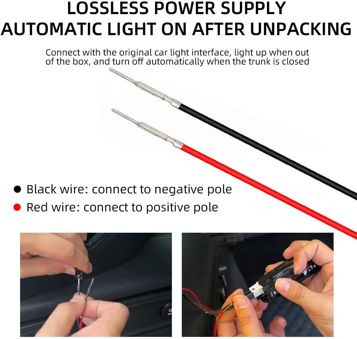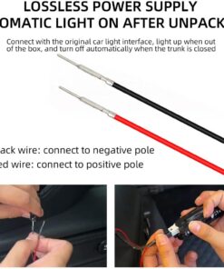 Say goodbye to complicated wiring with our no-wiring automatic detection rear hatch light strip! Designed for non-destructive installation, simply connect the positive and negative wires to your vehicle’s original lighting system. The ultra-thin, customizable strip fits perfectly in the silicone gaps of the trunk, maintaining your car’s original aesthetic.