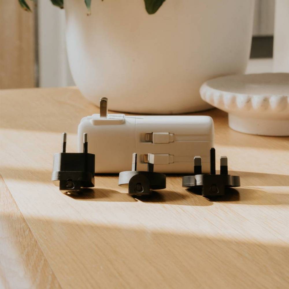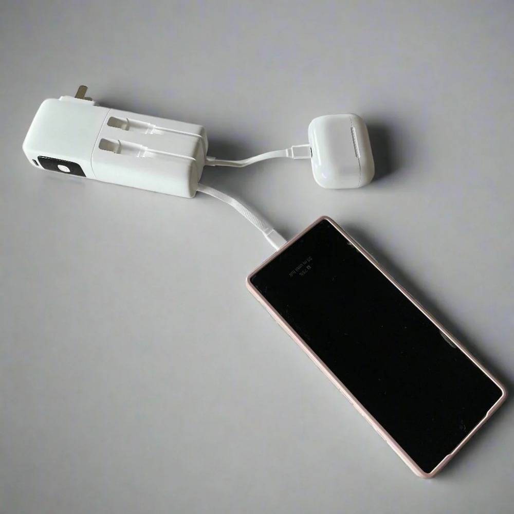 Stay charged wherever your adventures take you! The Slim Portable Charger is designed for travelers, featuring interchangeable adaptors for AU, EU, UK, and Asia, ensuring global compatibility in over 150 countries. With built-in cables, it rapidly charges your devices, keeping you connected on the go.