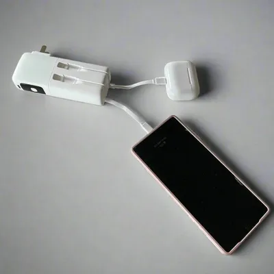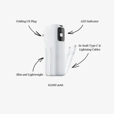 Stay charged wherever your adventures take you! The Slim Portable Charger is designed for travelers, featuring interchangeable adaptors for AU, EU, UK, and Asia, ensuring global compatibility in over 150 countries. With built-in cables, it rapidly charges your devices, keeping you connected on the go.