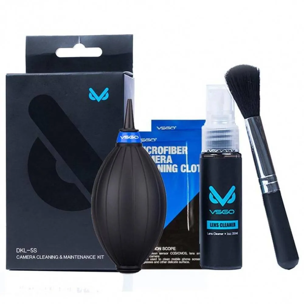 VSGO DKL-5S Professional DSLR Camera Lens Cleaning Kit With 30ml Lens Cleaner Cleaning Brush Mini Air Blower Microfiber Cloth.